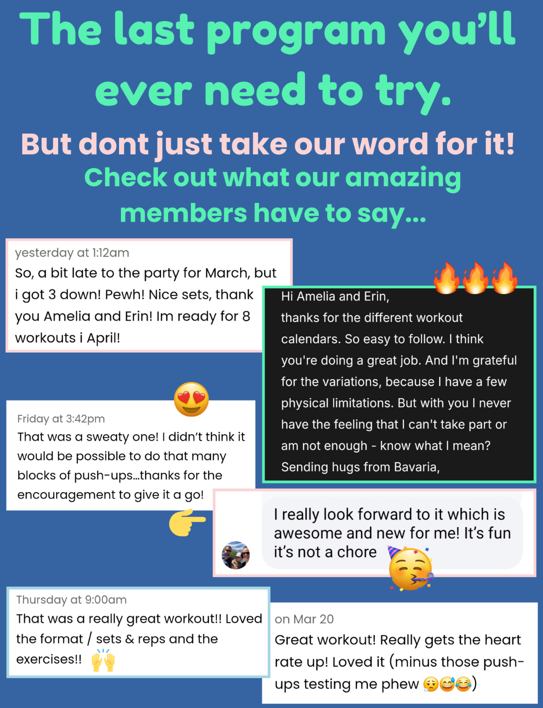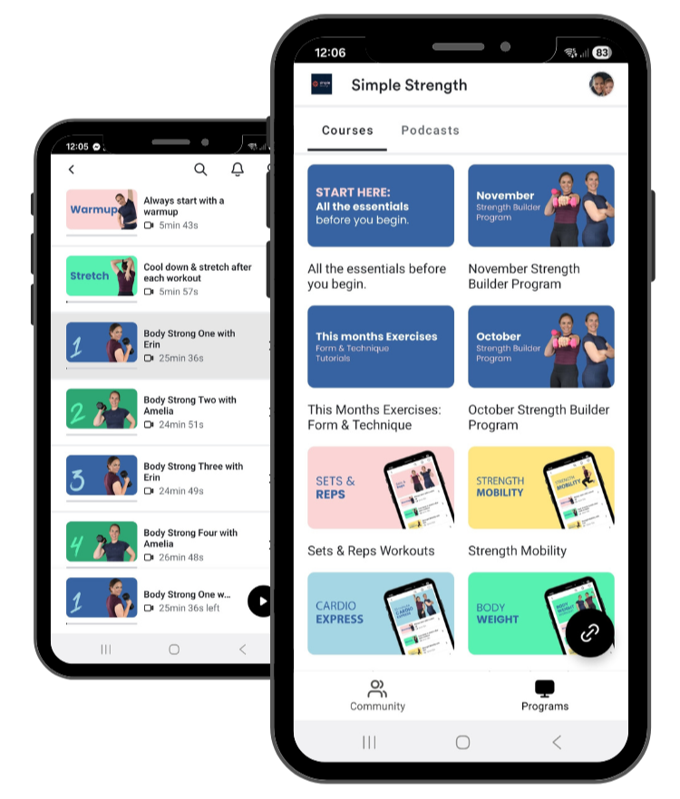 With video guidance from Erin & Amelia you'll know exactly what to do and how. Each workout builds on the last to create a balanced program month on month.